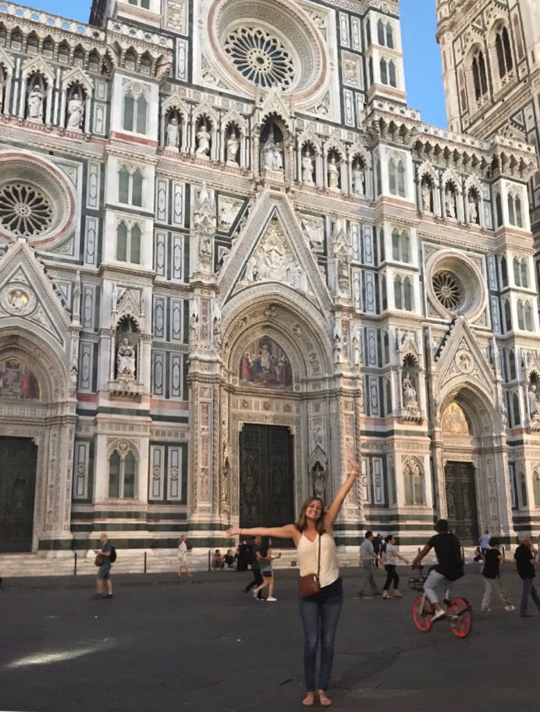 For dinner we went out to this Irish Pub located right next to the Duomo! Food was okay, but they had good cheap drinks! On our way out I couldn't help but to notice this foreign man balancing his cell phone and selfie stick on top of a garbage can, setting a 10 second timer and running out and posing in front of the cathedral. After watching him give his second attempt I just had to help him. So I offer to take his picture and he grins (i wasn't really sure if he understood my offer) but he ran out into the middle of the street put his hand on his hip and smiled ear to ear. After I snapped that he pointed to the other building and we both shifted positions and I got a few more. He was very thankful, but that man made my night.